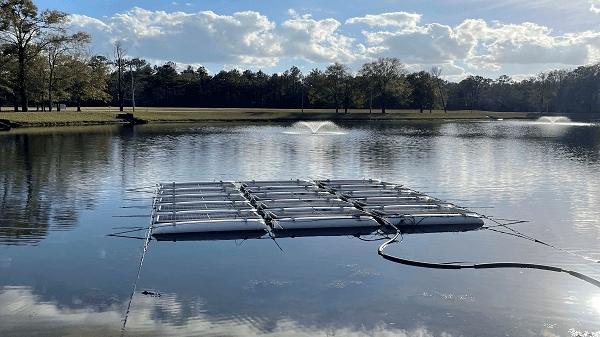 浮動(dòng)太陽(yáng)能系統(tǒng)使用可再生能源為三個(gè)增氧機(jī)供電,用于改善生產(chǎn)設(shè)施中池塘的水質(zhì)。
