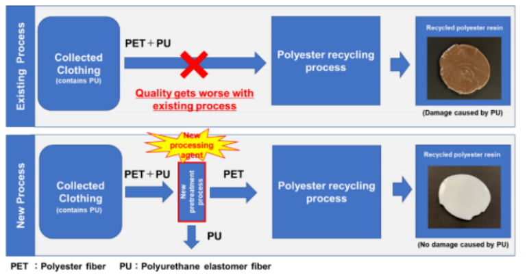 帝人富瑞特開發出一種新技術,可以從廢棄的滌綸服裝中去除聚氨酯彈性體纖維